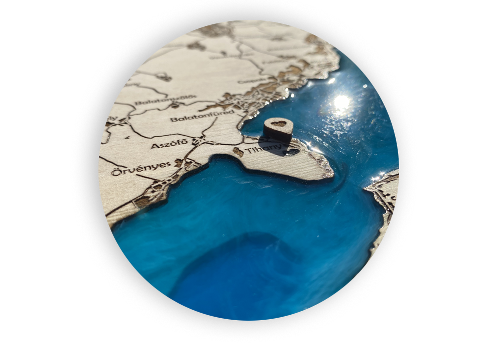 Kézzel készült Balaton és Velencei-tó térképek ragyogó epoxy gyantával, vagy egyedi várostérképek az életetek fontos helyszíneivel. Tökéletes nászajándék vagy örök emlék a nappaliba.